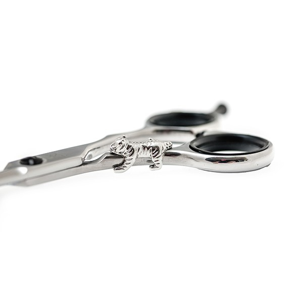 Katachi KM1 Tiger - декоративное украшение для ножниц. Фигурка тигра изготовлена из металла и оснащена магнитным креплением, которое надёжно удерживает брелок на ручке ножниц во время работы.
