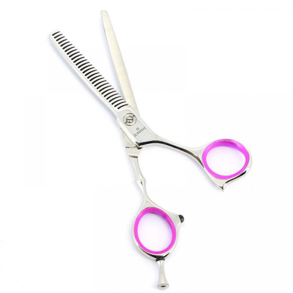 Парикмахерские филировочные ножницы Tayo Classic DL16555AZ выполнены из высококачественной стали, твердость которой по шкале Роквелла примерно 59-61 единиц. Заточка лезвий конвекционная. Длина инструмента составляет 5.5 дюймов (14 сантиметров). На одном из рабочих полотен 29 зубцов, которые отлично справляются с филировкой и созданием сложных стрижек.
