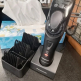 В машинку установлен современный литий-ионный аккумулятор, лишенный эффекта памяти. Время полной зарядки батареи - 1 час. Время автономной работы при 100% заряде - 50 минут. На корпусе есть два индикатора - зеленый обозначает процесс зарядки, красный - предупреждает о ее необходимости. В случае неожиданного разряда аккумулятора предусмотрена возможность работы машинки с прямым подключением к сети. В комплекте предусмотрена подставка для зарядки.
