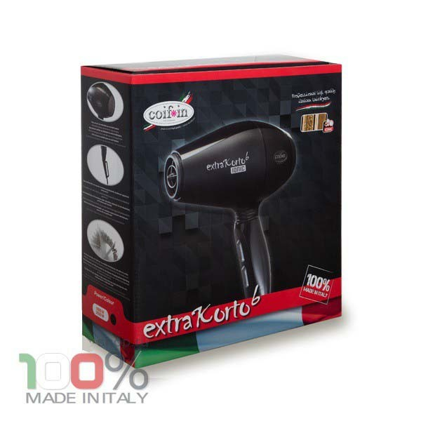 Coifin ExtraKorto 6 Ionic EK6K - укороченный профессиональный фен с потребляемой мощностью 2000 Вт, который оснащается надежным мотором итальянского производства, поддерживает функцию ионизации и комплектуется дополнительными насадками.