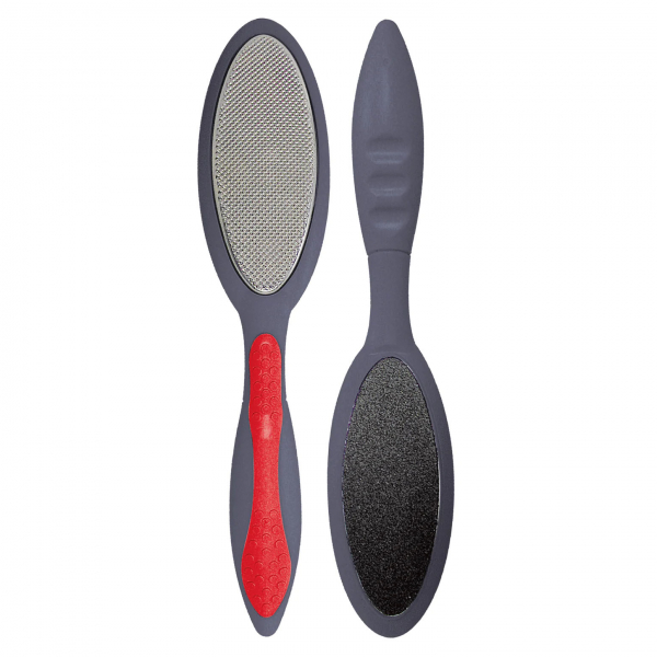 Терка для педикюра Titania 3041/Men B для мужчин. Двусторонний аксессуар имеет эргономичную форму, с одной стороны находится наждачная поверхность, с другой - мелкая терка из высококачественной стали. Основание изготовлено из пластика, длиной 22 сантиметра. Используется для удаления мозолей и натоптышей, а также для полировки стопы. Нескользящая ручка и изогнутая форма позволяют легко удалять мозоли в труднодоступных местах.